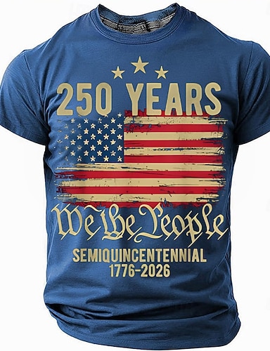 Муж. 250-летие Соединенных Штатов Футболка С короткими рукавами Футболка 3D печать Вырез под горло Рубашка Повседневные Армия Для улицы Повседневные Черный Красный Синий Лето Весна Одежда S M L XL