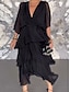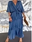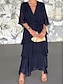 Жен. Платье средней длины Повседневное платье Шифон Шифоновые платья Элегантный стиль Мода Современное на открытом воздухе Отпуск На выход Стандартный Полотняное плетение Рукав до локтя V