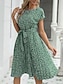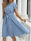 Жен. Мини-платье Повседневное платье Летнее платье Платье в стиле бохо Туземные Повседневные Отпуск выходные Стандартный Цветочный принт С короткими рукавами Рубашечный воротник Синий Aqua Blue