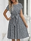 Жен. Платье до колена Повседневное платье Цветочное платье Элегантный стиль Мода Современное на открытом воздухе Отпуск На выход Стандартный Цветочный принт Без рукавов Вырез под горло Синий Aqua
