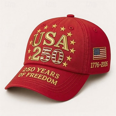 Бейсболка к 250-летию США, патриотическая вышитая кепка, красная, регулируемая, с застежкой-регулятором, День независимости 1776–2026, для мужчин и женщин, подарок на парад 4 июля.
