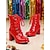 Женские красные лакированные ботинки до колена с блоком каблука для Марди Гра — яркая и блестящая обувь для карнавала вечеринок и праздничных событий