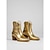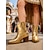 Женские анкел-бутсы Мардей Гра с золотой крокодиловой текстурой и блоком на каблуке металлические ботинки в карнавальном стиле для женщин идеально подходящие для карнавальных вечеринок и фестивальных