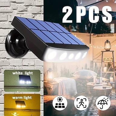 2 шт. уличных солнечных водонепроницаемых светодиодных настенных светильника с датчиком движения IP65, заливающее освещение для сада, патио, двора, забора, ступеней, крыльца, террасы, декоративное