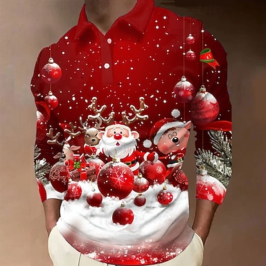 Новогодняя тематика Муж. Дед Мороз Северный олень Новогодние костюмы Рубашка Кнопка рубашка Длинный рукав Веселая на открытом воздухе Праздники Весна Осень Отложной 3D печать Рубашка из льна Белый 1