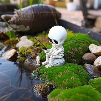 Скелет-рыболов из смолы с качающейся головой на Хэллоуин, украшение для газона, балкона и двора