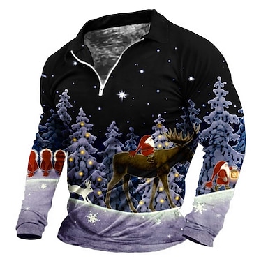рождество мужская рождественская сцена 3d молния поло гольф елка Санта-Клаус графические принты отложной воротник белый розовый синий фиолетовый зеленый 3d принт улица длинный рукав молния принт