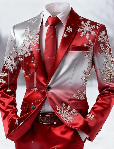 Новогодняя тематика Муж. В снежинку Пиджак Удобный Художественный На каждый день Вечерние наряды Повседневные фестиваль 3D печать Пуговицы Весна Осень Зима Острый Длинный рукав Красный Синий Лиловый