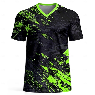 Муж. Геометрический принт Абстракция Футбольное лето Глобальный матч Футболка для бега Лето С короткими рукавами UPF 50 Быстровысыхающий Дышащий Тренажерный зал Бег Фитнес Зеленый и черный