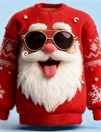 Новогодняя тематика Муж. Дед Мороз Худи Толстовка Мода На каждый день Длинный рукав Капюшон Отпуск Праздники Уличная одежда Красный Бордовый Синий Зеленый С принтом Передний карман Весна & осень