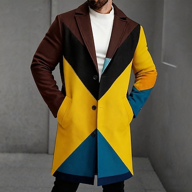 Муж. Геометрический принт Контрастных цветов Легкая куртка Пальто Сохраняет тепло На каждый день Бизнес Повседневные 3D печать Пуговицы Передний карман Весна Осень Зима Острый Длинный рукав