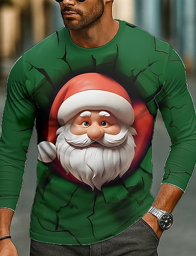 Новогодняя тематика Муж. Дед Мороз 3D Футболка Длинный рукав Футболка 3D печать Вырез под горло Рубашка Мода Классический 3D Для улицы Повседневные Синий Лиловый Зеленый Лето Весна Одежда S M L XL
