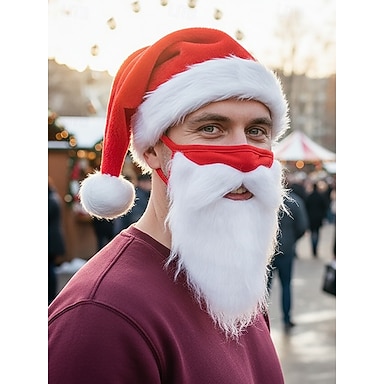 Мужской рождественский комплект из шапки Санты и маски с бородой, красная плюшевая шапка с белым мехом, удобная маска для лица, аксессуар для праздничного костюма для рождественских вечеринок и праздничных мероприятий