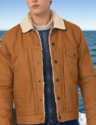 Муж. Зимняя куртка Флисовая жилетка Куртка-карго Повседневная куртка Отпуск Повседневные Сохраняет тепло Карман Флис Осень Зима Полотняное плетение Мода Уличный стиль Лацкан Обычная