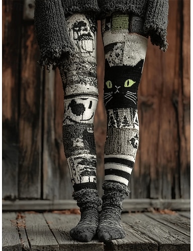 Жен. Брюки Леггинсы Уютные леггинсы Уличный стиль На каждый день Полная длина ЗавышеннаяPantsHalloween Кот Эластичная талия С принтом Воздухопроницаемость Удобный Эластичная