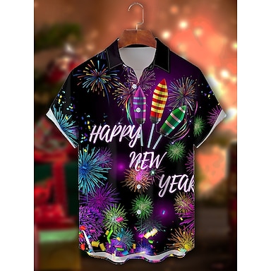 Новогодняя тематика Муж. Дед Мороз Человеческое лицо смешное рождество Рубашка Кнопка рубашка С короткими рукавами Веселая на открытом воздухе Праздники Лето Весна Отложной 3D