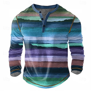 Муж. Радужный Полоски Рубашка Хенли Вафельная футболка С короткими рукавами Повседневные Ретро Классика Для спорта и активного отдыха Повседневные Праздники Весна лето Все сезоны