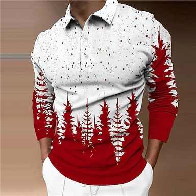 Новогодняя тематика Муж. Новогодние костюмы смокинг Футболка Длинный рукав Футболка 3D печать Вырез под горло Рубашка Мода Классический 3D Для улицы Повседневные Красный Лето Весна Одежда S M L XL
