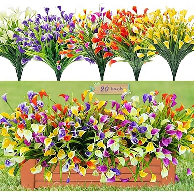 20 пучков искусственных калл для улицы, искусственные растения, устойчивые к УФ-излучению, искусственные пластиковые цветы для комнатных растений, украшения дома, крыльца, лета, кладбища, весны
