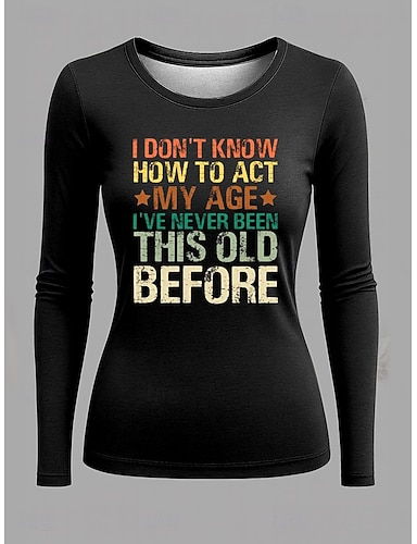 Жен. Футболка Графика Буквы Винтаж Мода Стиль Длинный рукав Вырез под горло Обычные топы Повседневные выходные С принтом Черный Весна Осень