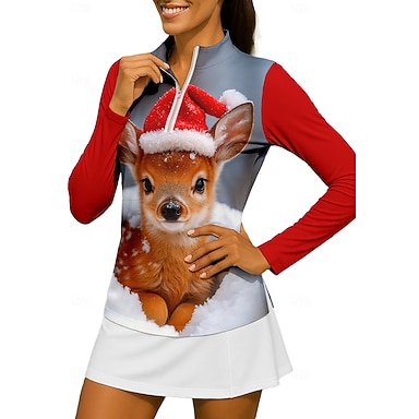 Новогодняя тематика Муж. Новогодние костюмы смокинг Футболка Длинный рукав Футболка 3D печать Вырез под горло Рубашка Мода Классический 3D Для улицы Повседневные Красный Лето Весна Одежда S M L XL
