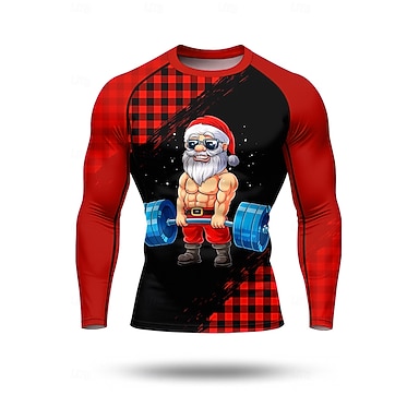 Новогодняя тематика Муж. Компрессионная футболка Футболка для бега Длинный рукав Футболка Футболка Быстровысыхающий Сжатие видеоизображений Для тренировки Power Flex Влагоотводящие
