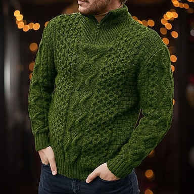 Муж. Ирландский пуловер Аранские пуловеры Рождественские свитера Пуловер Свитер Свитер-пуловер с застежкой-молнией на четверть Рельефный узор Кабель Вязать Обычные топы