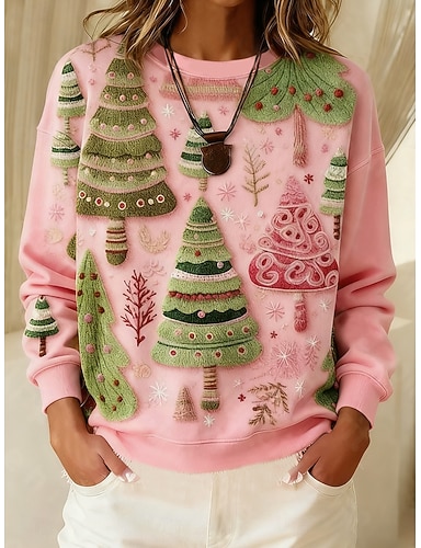 Новогодняя тематика Жен. Футболка Дед Мороз Северный олень В снежинку Винтаж Стиль Классика Длинный рукав Вырез под горло Круглый вырез Обычные топы выходные С принтом