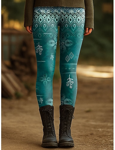 Новогодняя тематика Жен. Футболка Графика Снеговик Винтаж Мода Стиль Длинный рукав Вырез под горло Круглый вырез Обычные топы Повседневные выходные С принтом