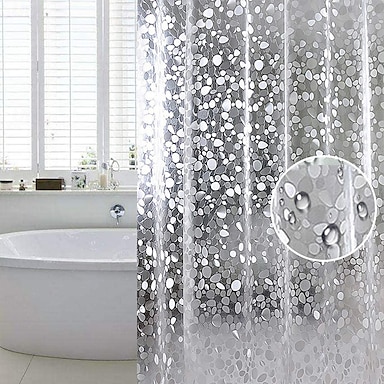 Занавеска для душа ПВХ водонепроницаемая 180 см * 180 см (70" * 70") прозрачная с каменной дорожкой тяжелые-duty с 12 люверсами пластиковыми крючками для ванной