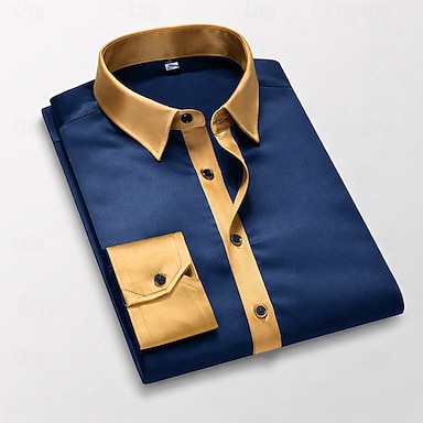 Муж. Рубашка Атласная рубашка Кнопка рубашка Выпускная рубашка Сплошной цвет Свадьба Официальные Черный Белый Винный Темно синий Длинный рукав Отложной Все сезоны Одежда Пэчворк