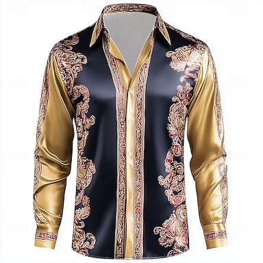 Муж. В снежинку Длинный рукав Отложной Деловые Офис Носить на работу На выход Пуговицы С принтом Мульти карман