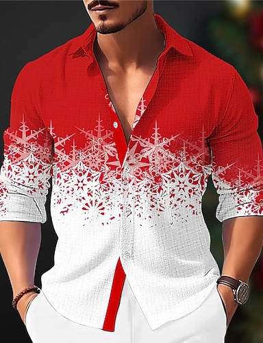 Новогодняя тематика Муж. Новогодние костюмы Рубашка-смокинг с принтом в виде галстука Рубашка Кнопка рубашка Длинный рукав Веселая на открытом воздухе Праздники Весна Осень Отложной 3D