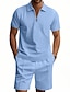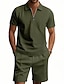 Муж. Рубашка Хенли Рубашка из 100% хлопка с кислотной стиркой С короткими рукавами Хенли Лето Весна Осень Полотняное плетение Ретро На каждый день Старинный Промытый Повседневные