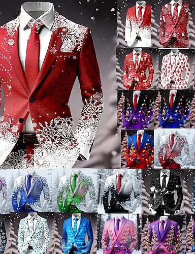 Новогодняя тематика Муж. Дед Мороз Новогодняя ёлка Северный олень Рубашка Атласная рубашка Длинный рукав Мода Повседневная на открытом воздухе Для вечеринок Праздники Весна Осень Отложной 3D