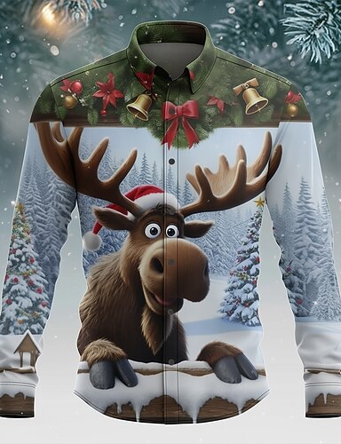Новогодняя тематика Муж. Дед Мороз Новогодняя ёлка Рождественский подарок Рубашка Кнопка рубашка Длинный рукав Веселая на открытом воздухе Праздники Весна Осень Отложной 3D печать рубашки с воротником