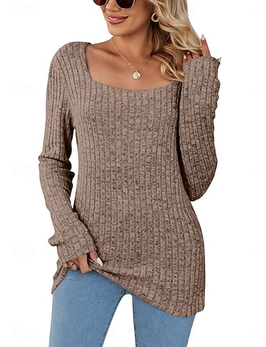 Женская футболка с длинным рукавом круглой вырез длинный рукав туника узор аргайл уютный плюшевый пуловер красный черный серый белый круглой вырез повседневная элегантная теплая осенняя зимняя одежда