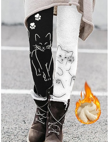 Жен. леггинсы на флисовой подкладке Флисовые штаны Леггинсы Отпуск Винтаж Этнический стиль Полная длина Завышенная Графика Кот Сохраняет тепло удобный Удобный Эластичная