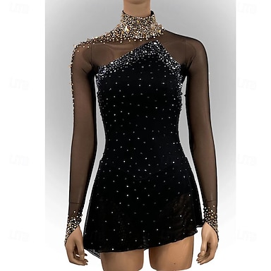 Платье для фигурного катания Жен. Девочки Катание на коньках Платья Черный Эластичная Учебный Соревнование Одежда для фигурного катания Сохраняет тепло Стразы Длинный рукав