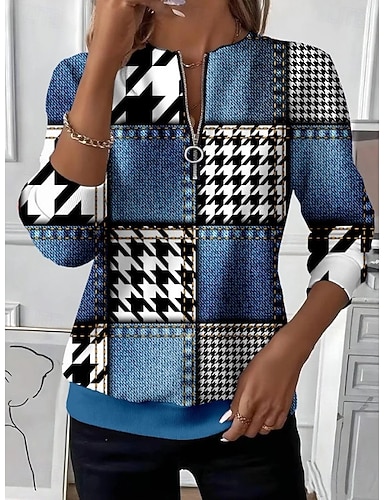 Жен. Пуловер Толстовка Толстовки с застежкой-молнией Графика Геометрический принт Контрастных цветов Мода На каждый день Длинный рукав Вырез под горло Обычные топы Для улицы На каждый день
