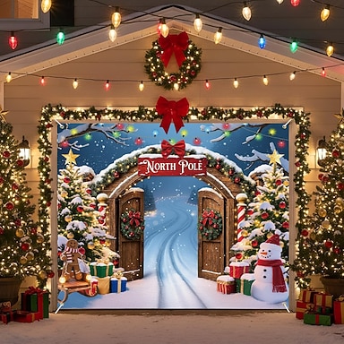 Новогодняя тематика гобелен Крышка гаражной двери Большое Подвесное Санта Клаус Симпатичные Стиль 3D Вечеринка На открытом воздухе Праздник Фоны для съемки Ярд (0,9 м) Домашний декор