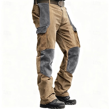 Муж. Брюки карго Штаны Вельветовые брюки Пуговицы Мульти карман Контрастных цветов Пригодно для носки на открытом воздухе Повседневные Отдых и туризм Мода Классика Коричневый Темно-серый