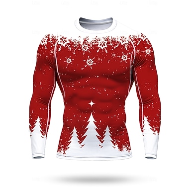 Новогодняя тематика Муж. Универсальные Футболка для бега Спортивная рубашка Фитнес-рубашка Рубашка тренировки Беговой верх Длинный рукав Футболка Футболка UPF 50