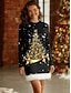 Christmas Women's Mini Dress Sheath Dress Casual Party Daily Regular Fit Christmas Tree Long Sleeve Crew Neck Blue Purple Gold Green Fall Winter