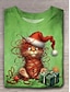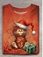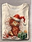 Christmas Women's T Shirt Graphic Animal Christmas Tree Vintage Fashion Stylish Long Sleeve Round Neck Regular Tops Daily Weekend Print Orange Green off-white Fall Winter