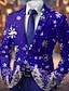Men's Blazer Coat Christmas Casual Festival Casual Daily Fall / Winter 100% Polyester Snowflake 3D Print Buttons Thermal Warm Comfortable Single Breasted Blazer Black White Blue Sky Blue