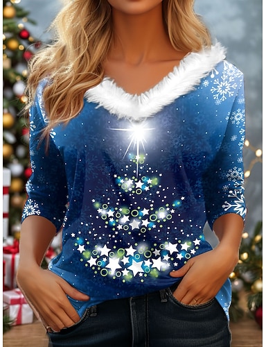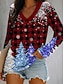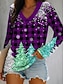 Christmas Women's T Shirt Graphic Christmas Tree Vintage Stylish Classic Long Sleeve V Neck Regular Tops Daily Patchwork Print Blue Purple Green Fall Winter