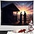 Chrismas Hanging Tapestry Glowing Merry Christmas Scene with Santa Claus Snowman Reindeer Gingerbread House Christmas Tree and Gift Boxes Wall Art Holiday Home Decoration