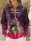 Women's Pullover Sweatshirt Graphic Christmas Tree Casual Long Sleeve High Neck Half Zip Regular Tops Dailywear Casual Sports Pink Purple Green Fall Winter