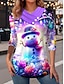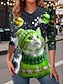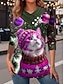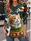 Christmas Women's T Shirt Graphic Cat Christmas Vintage Stylish Classic Long Sleeve V Neck Regular Tops Daily Weekend Buttons Print Purple Orange Green Fall Winter